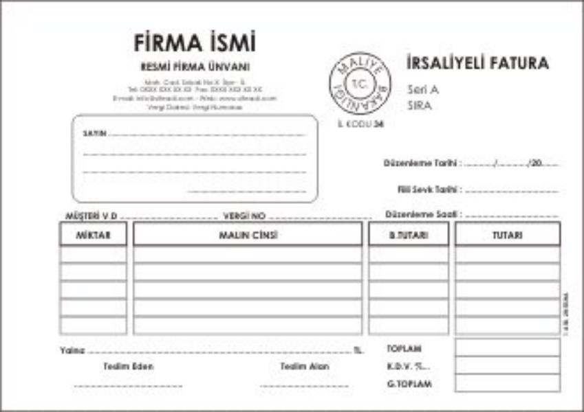 İrsaliyeli fatura tanımı İrsaliyeli fatura, fatura ve sevk irsaliyesinin yerine geçerek düzenlenen bir belgedir.